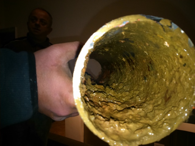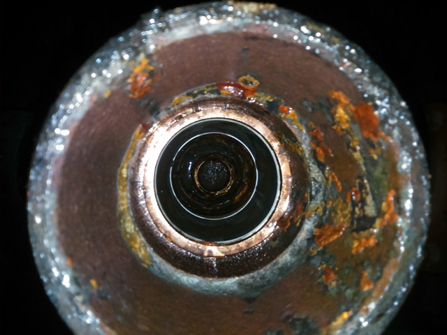 Στην πρώτη εικόνα βλέπουμε την αρχική κατάσταση της σωλήνας του ζεστού νερού με όλες τις επικαθίσεις σκουριάς και λάσπης.